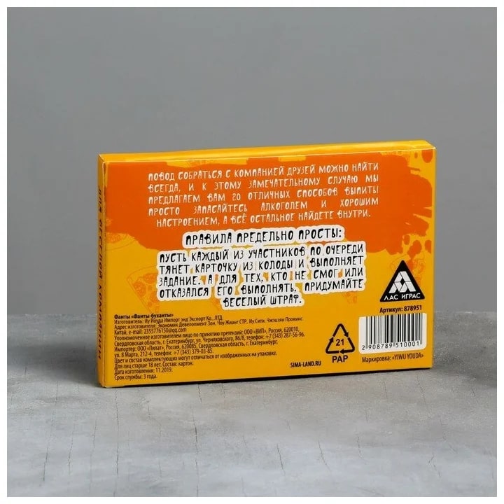 Купить игра для компании "фанты буханты" 20 карт от 100 руб. с доставкой до пункта выдачи в Муроме. Интернет магазин ДекаМаркет. Оплата при получении.