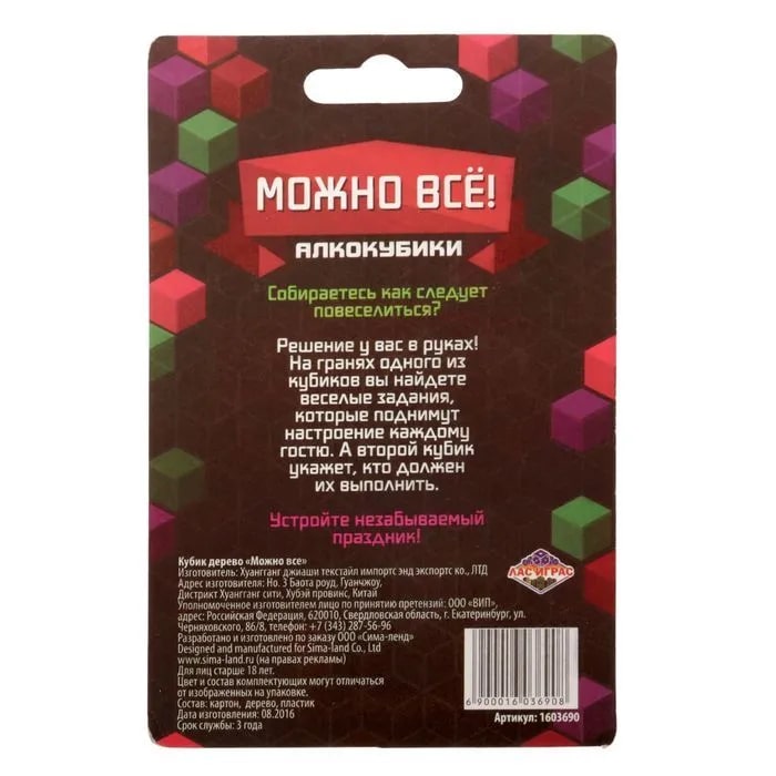 Купить кубик "можно все", алкокубики для принятия решений от 60 руб. с доставкой до пункта выдачи в Муроме. Интернет магазин ДекаМаркет. Оплата при получении.